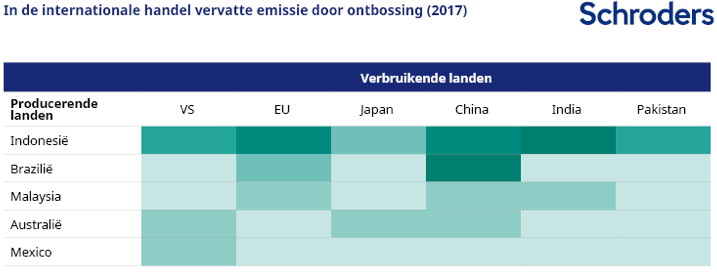 Als de ontbossing in de tropen als land zou worden beschouwd, zou het derde staan op de ranglijst van landen met de hoogste koolstofuitstoot. Kortom, ontbossing is een groot probleem en daarom hecht Schroders sterk aan analyse en actieve betrokkenheid op dit terrein.