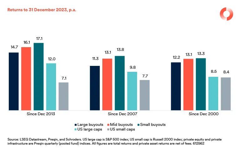 Private assets typically outperform, net of fees