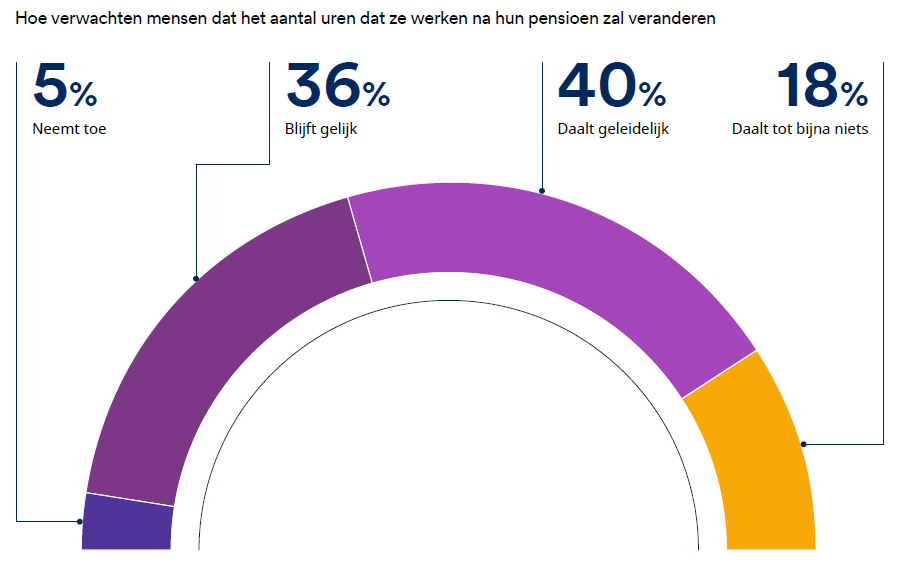 Een mogelijke verklaring is dat ze een geleidelijker pad voor zich zien. 42% van de Belgische niet-gepensioneerden denkt na hun 'pensioen' nog evenveel of zelfs meer uren per week te werken. 43% gaf aan dat het voortdurende veranderende overheidsbeleid rond pensionering hen belemmert om te sparen.