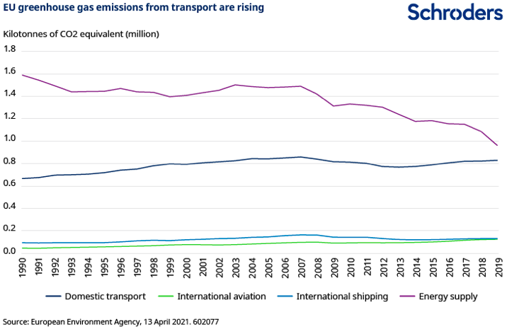 Lire aussi Planes, trains and automobiles: how is Europe’s transport sector curbing its emissions? Par Nicholette MacDonald-Brown et Arianna Fox, spécialistes des actions européennes chez Schroders.