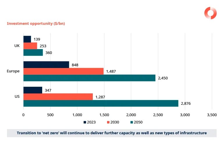 Hernieuwbare energie bevindt zich momenteel in een kopersmarkt, met herijkte aandelenrendementen als gevolg van hogere rentetarieven en minder droog kruit na een correctie op de fondsenwerving. Dit creëert een kloof op het gebied van vraag en aanbod tussen het beschikbare kapitaal en de ontwikkelingsbehoeften van hernieuwbare projecten om aan de nettonulverplichtingen te voldoen. Dit biedt kansen voor strategieën die profiteren van actief beheer. Er is potentieel voor verbeterde kasstromen over het hele energietransitiespectrum, van Core/Core+ operationele activa tot gerichte bouw en de ontwikkeling van nieuwere technologieën.