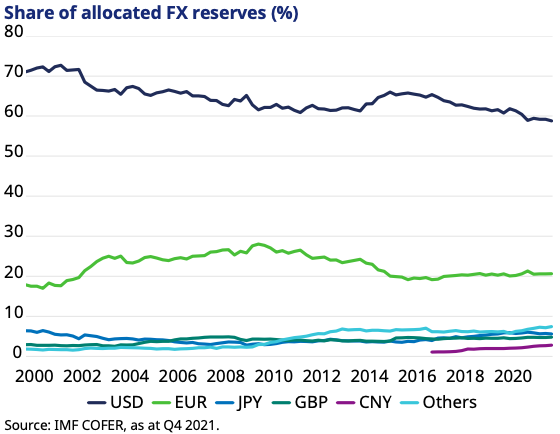 La tendance à la diversification des réserves de devises va-t-elle s'accélérer maintenant que les États-Unis ont décidé de bloquer les avoirs de la banque centrale russe ? Est-ce que ce serait alors la fin de la domination du dollar américain, se demande David Rees, économiste senior marchés émergents chez Schroders.