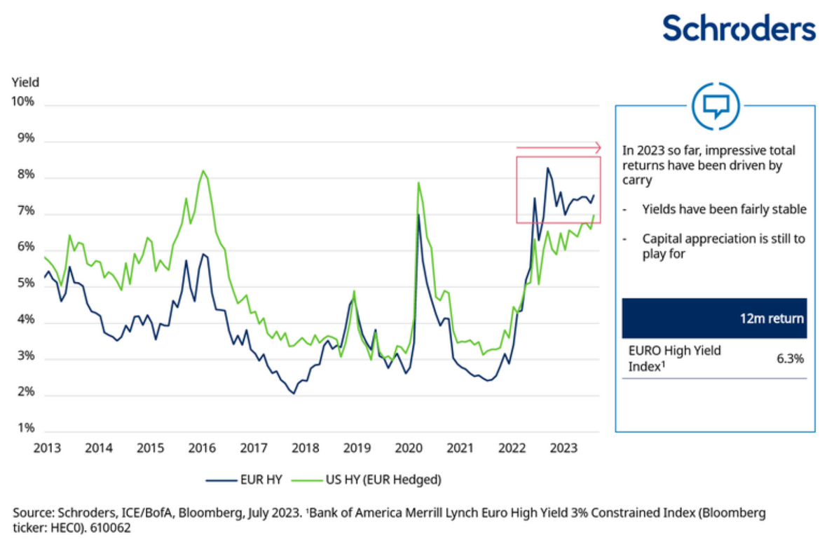 Afbeelding: Waarderingen van de wereldwijde high-yieldmarkt - Ondanks sterke YTD-rendementen is het instapniveau nog steeds uitstekend
