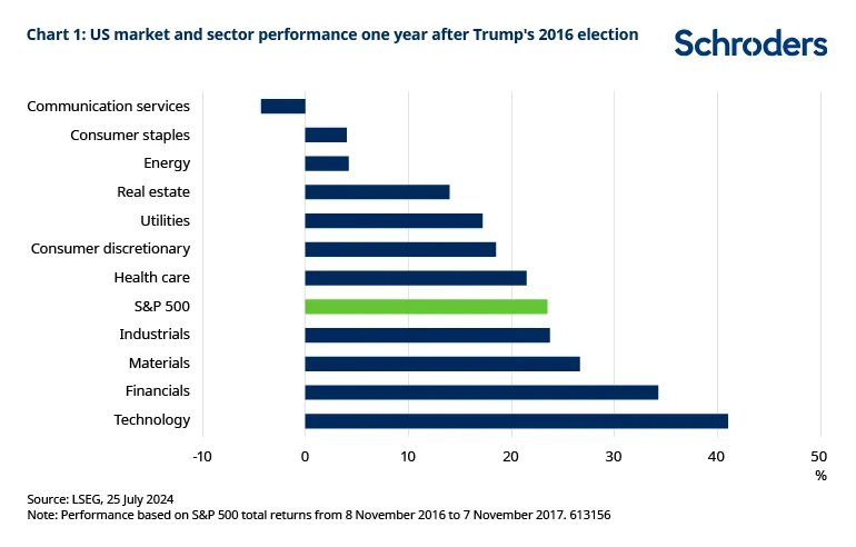 While past performance is not a guide to future returns, if Trump does win this time, the US market could again benefit from the expectations of stronger earnings growth. Although there is the risk of higher government bond yields from a larger budget deficit, which could undermine already rich equity valuations.