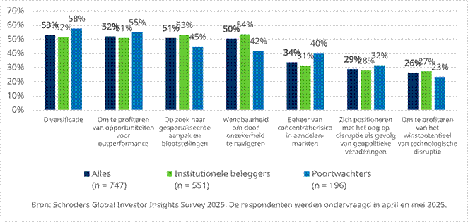 Beleggers wenden zich steeds vaker tot actief beheer om de veerkracht van hun portefeuille te versterken en specifieke beleggingskansen te benutten in een klimaat van toenemende economische onzekerheid en marktvolatiliteit. Dat blijkt uit de vandaag gepubliceerde Global Investor Insights Survey (GIIS)1, de vlaggenschip-enquête van Schroders.
