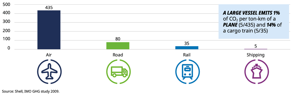 Le système d’échange de quotas d’émission est un moteur essentiel de la réduction des émissions de CO2 dans la production d’énergie et dans l’industrie. Les entreprises seront condamnées à une amende si elles émettent plus de CO2 que le quota d’émission dont elles disposent. L’OMI devrait introduire cette année un objectif climatique plus ambitieux visant à réduire de moitié les émissions absolues du transport maritime d’ici 2050. Le transport maritime international de marchandises assurant 80 à 90 % du commerce mondial, le secteur doit faire des efforts considérables pour réduire les émissions de CO2. Bien que le transport maritime soit la forme de transport la plus efficace en termes d’émissions de CO2 (sur la base des émissions de CO2 par tonne-kilomètre), il représente encore environ 3 % des émissions annuelles mondiales de gaz à effet de serre.