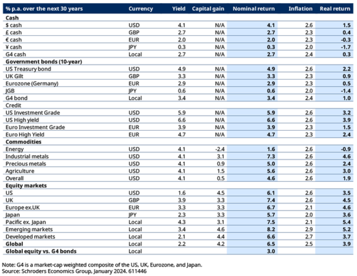 Lees ook : How climate change and higher inflation have affected our 30-year return forecasts, door Schroders.