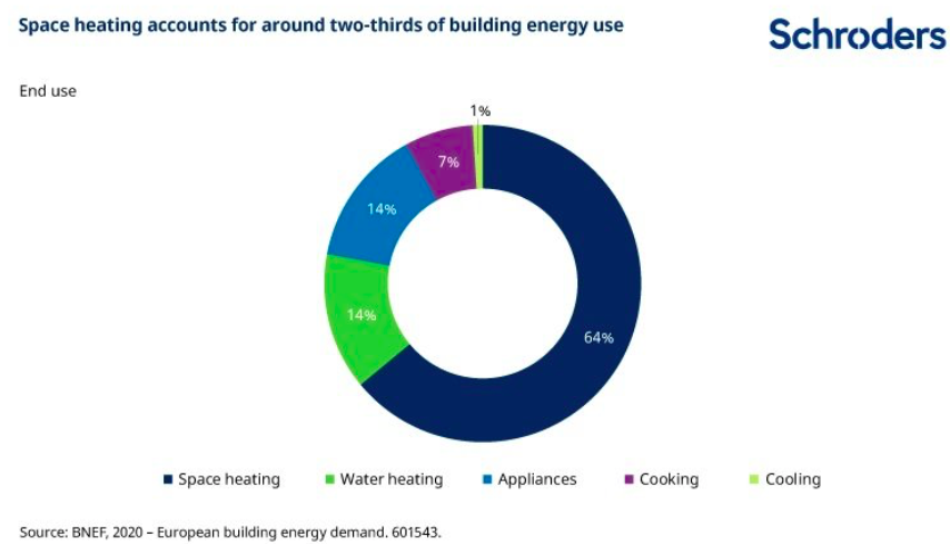 Verwarming is een belangrijke bron van CO2-uitstoot. In Europa zijn gebouwen goed voor 35% van alle uitstoot en 40% van de energievraag. Tweederde van die - vooral fossiele - energie wordt gebruikt voor verwarming. De warmtepomptechnologie bestaat en als warmtepompen met schone elektriciteit worden aangedreven, reduceren zij de CO2-uitstoot met 90% ten opzichte van een gasgestookte warmteketel.