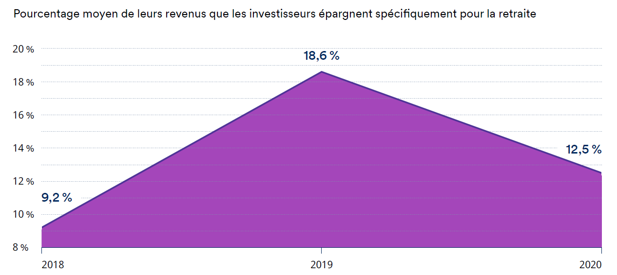 Il est encourageant toutefois de constater que le taux moyen d’épargne-retraite reste solide. Les investisseurs belges déclarent consacrer en moyenne 12,5 % de leur revenu à l’épargne-retraite. 53 % des investisseurs belges interrogés s'accordent à dire que la pension de l'État ne suffira pas à elle seule à leur assurer une retraite viable.