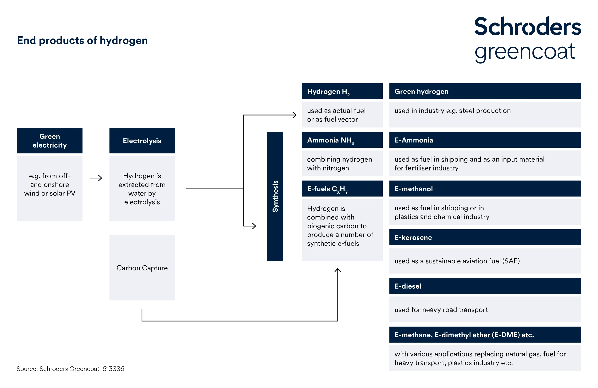 La thèse d’investissement en faveur de l’hydrogène vert a toujours été convaincante. L’hydrogène est utilisé depuis des décennies dans des processus industriels allant du raffinage à la production d’engrais. En tant que carburant « propre » zéro émission, qui agit également comme un vecteur énergétique efficace, il constitue un soutien très prometteur à la décarbonation des industries dans l’ensemble de l’économie, y compris le transport longue distance, les produits chimiques et la sidérurgie.