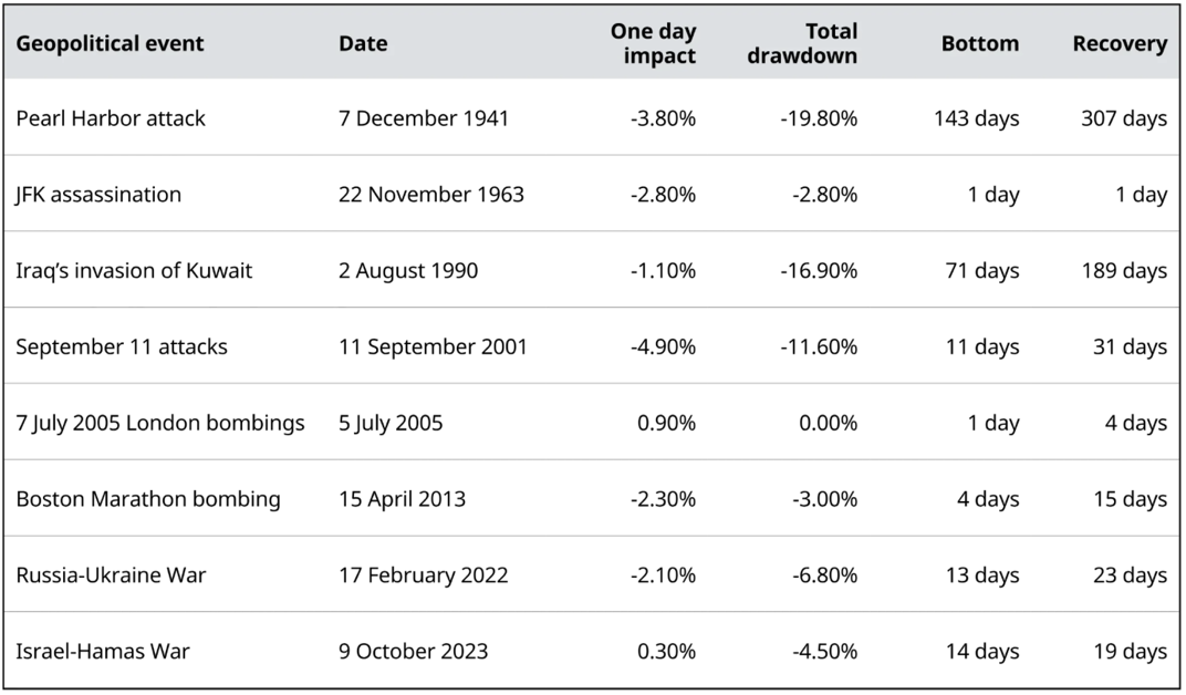 2. Les événements géopolitiques n'ont souvent qu'une influence de courte durée sur les marchés boursiers