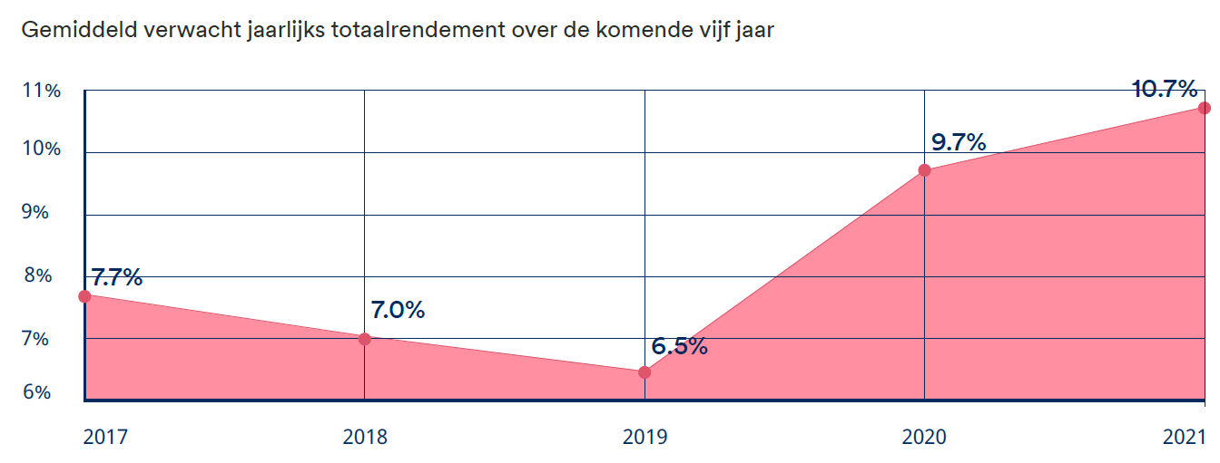 Onlangs de onzekerheid vanwege de pandemie is het beleggersvertrouwen in België gestegen tot het hoogste niveau sinds 2016, toen het onderzoek voor het eerst werd gedaan. Voor de komende vijf jaar wordt nu een gemiddeld jaarlijks rendement van 10,7% verwacht, terwijl dat een jaar geleden nog 9,7% was.