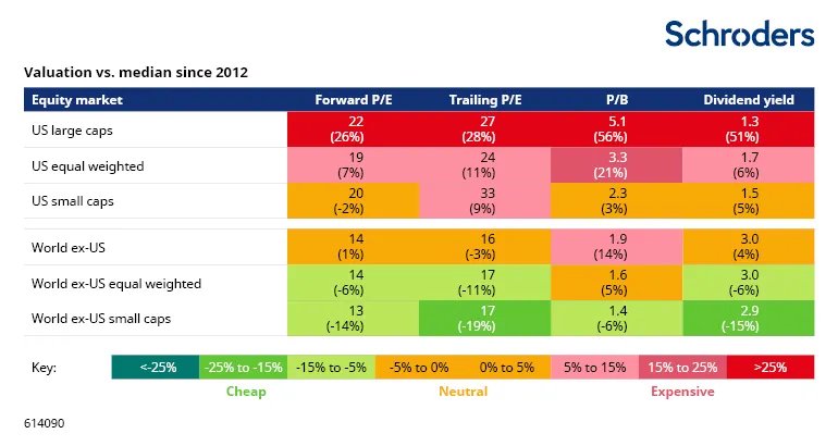 Consensus earnings estimates over the next two years for the key global regions are strong: 8-12% average growth each year (source: LSEG Datastream, Schroders Strategic Research Unit, as at November 2024). Assuming no de-rating of equity markets, the return opportunities from global equities would be reasonable, if not spectacular.
