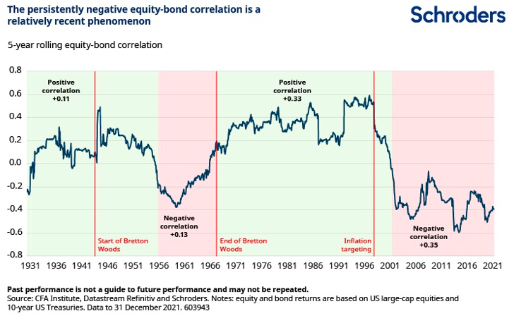Sean Markowicz, stratège chez Schroders, fait le point sur l'origine de la corrélation entre actions et obligations, sur la raison de son évolution au fil du temps et sur ce que cela signifie en cette période d’insécurité face aux taux et à l'inflation. Il s'interroge sur la poursuite de la corrélation négative entre actions et obligations des 20 dernières années.